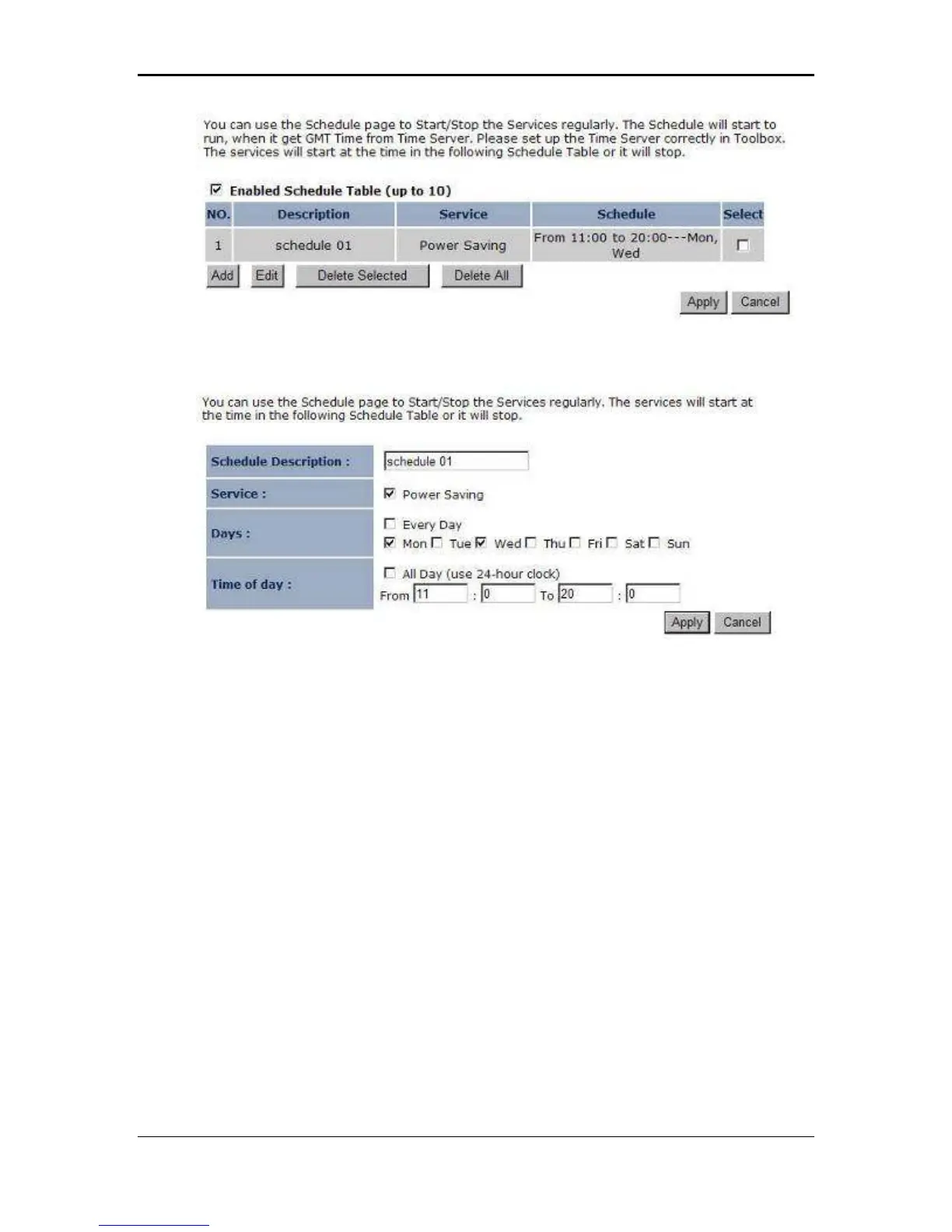 Click on the Apply button to add this schedule into the list.