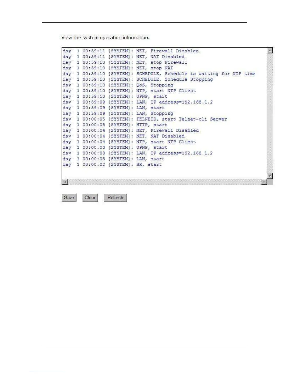 Refresh: Click on the Refresh button to refresh the log.