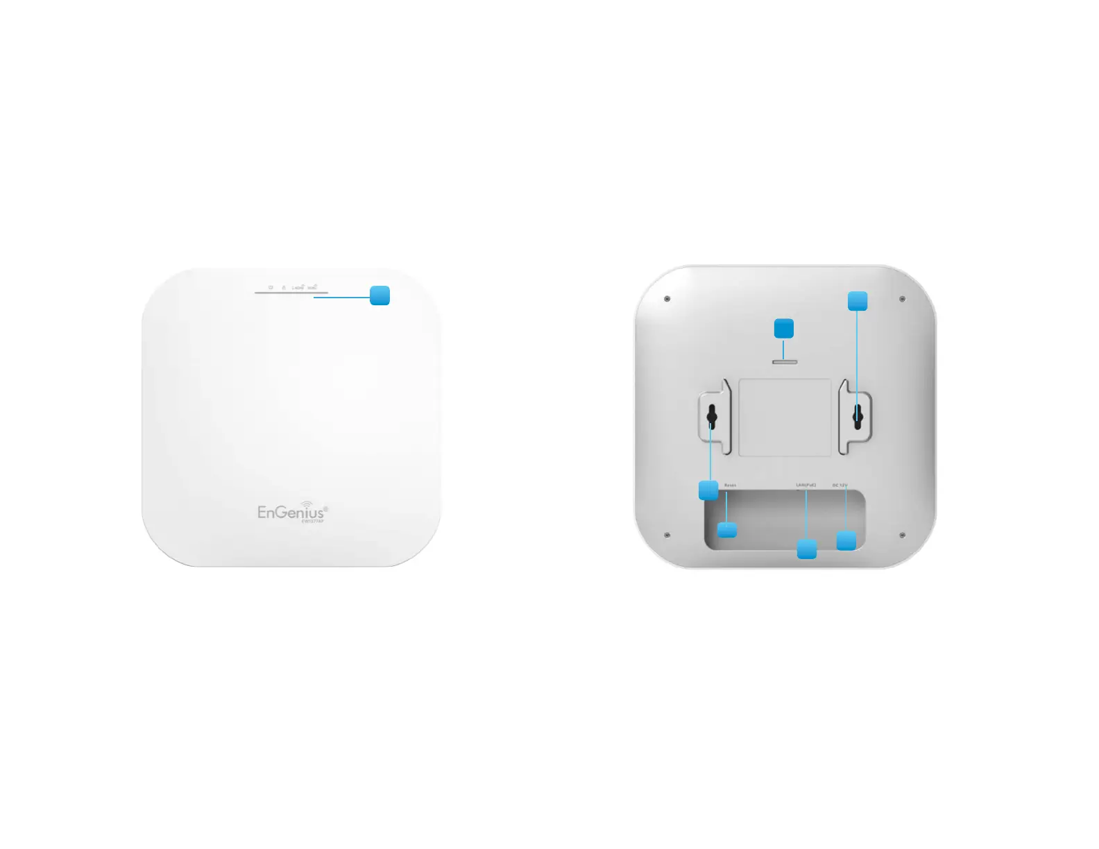 6 LED Indicators: LED lights for Power, LAN Port, 2.4 GHz Connection and 5 GHz Connection.