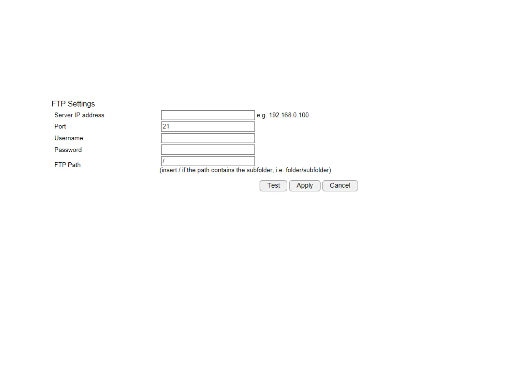 FTP Path: enter the initial path if applicable