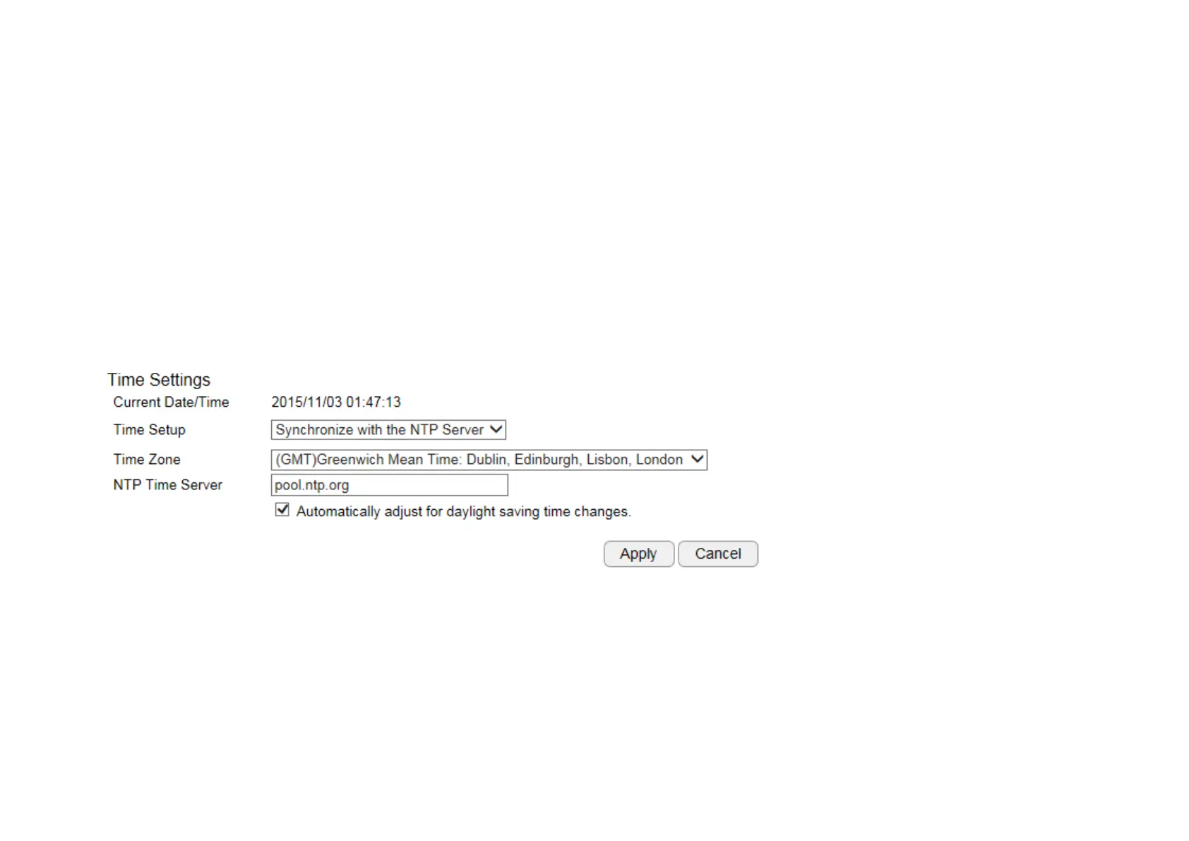 NTP Time Server: the time server address