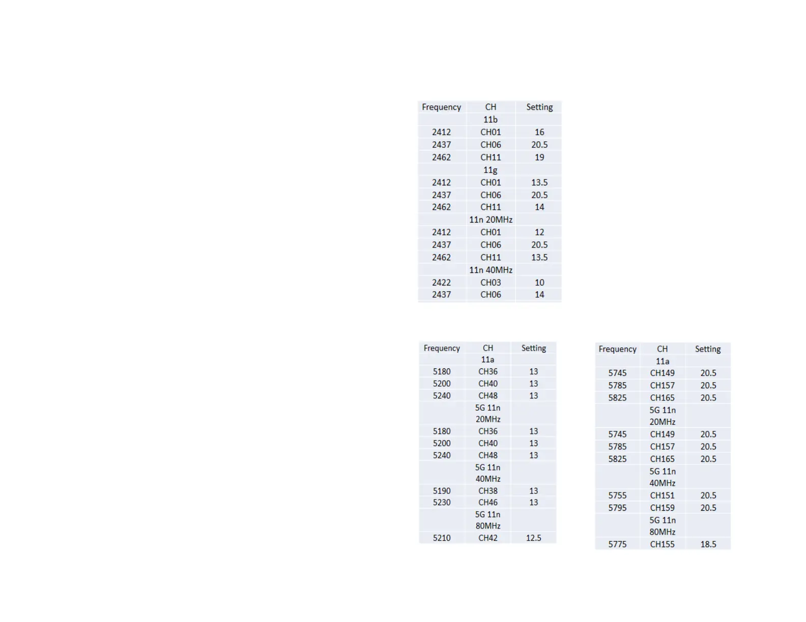 ENH1350EXT follow below power table to do power setting.