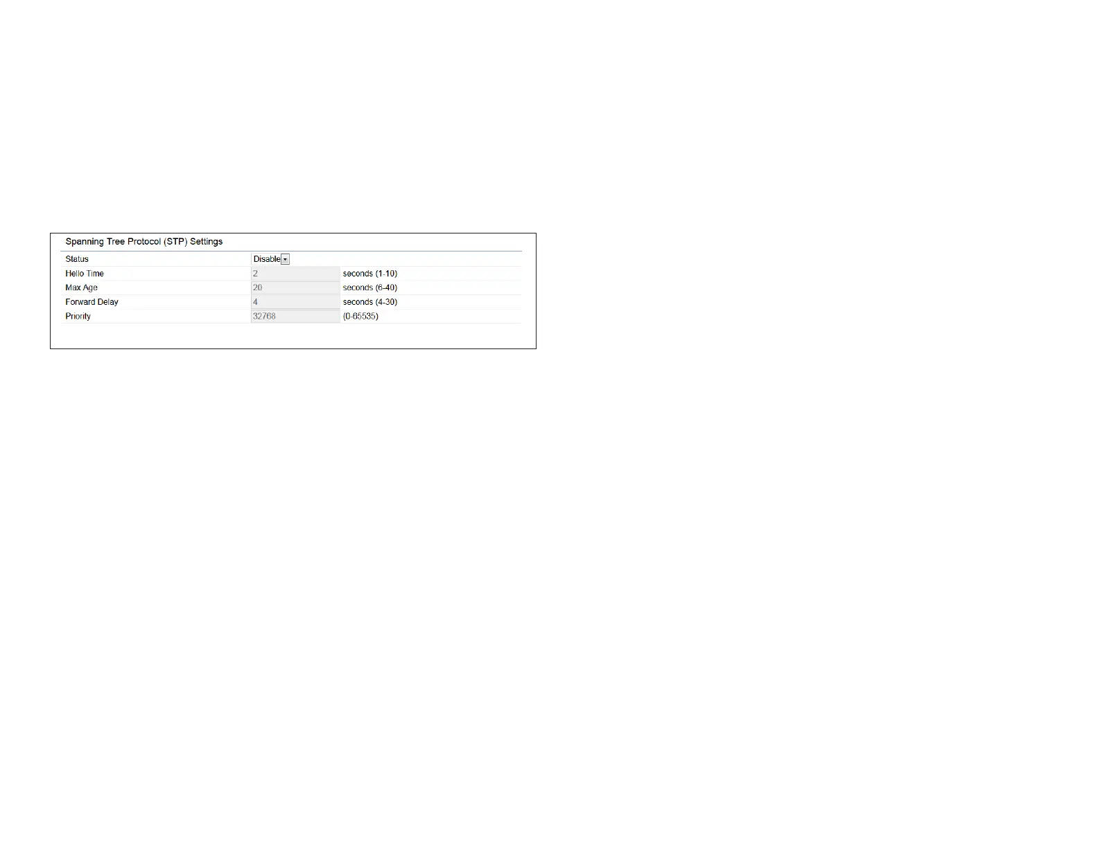 Spanning Tree Status: Enables or disables the Spanning