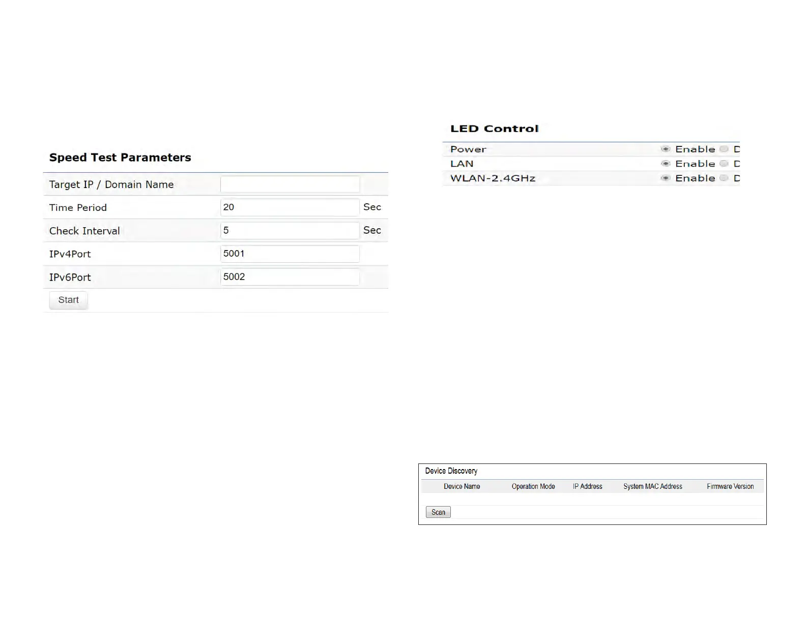 Speed Test Parameters / LED Control