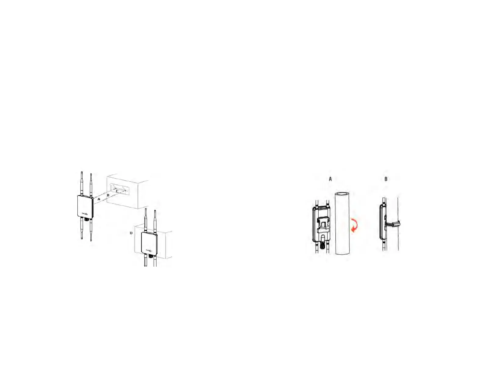 Access Point against wall with the mounting screw heads.