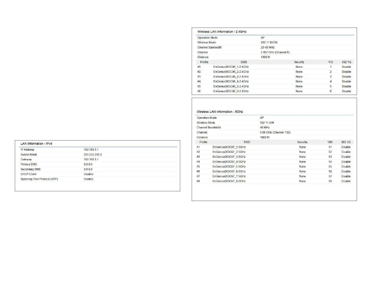 • The Wireless LAN Information 2.4 GHz/5 GHz section