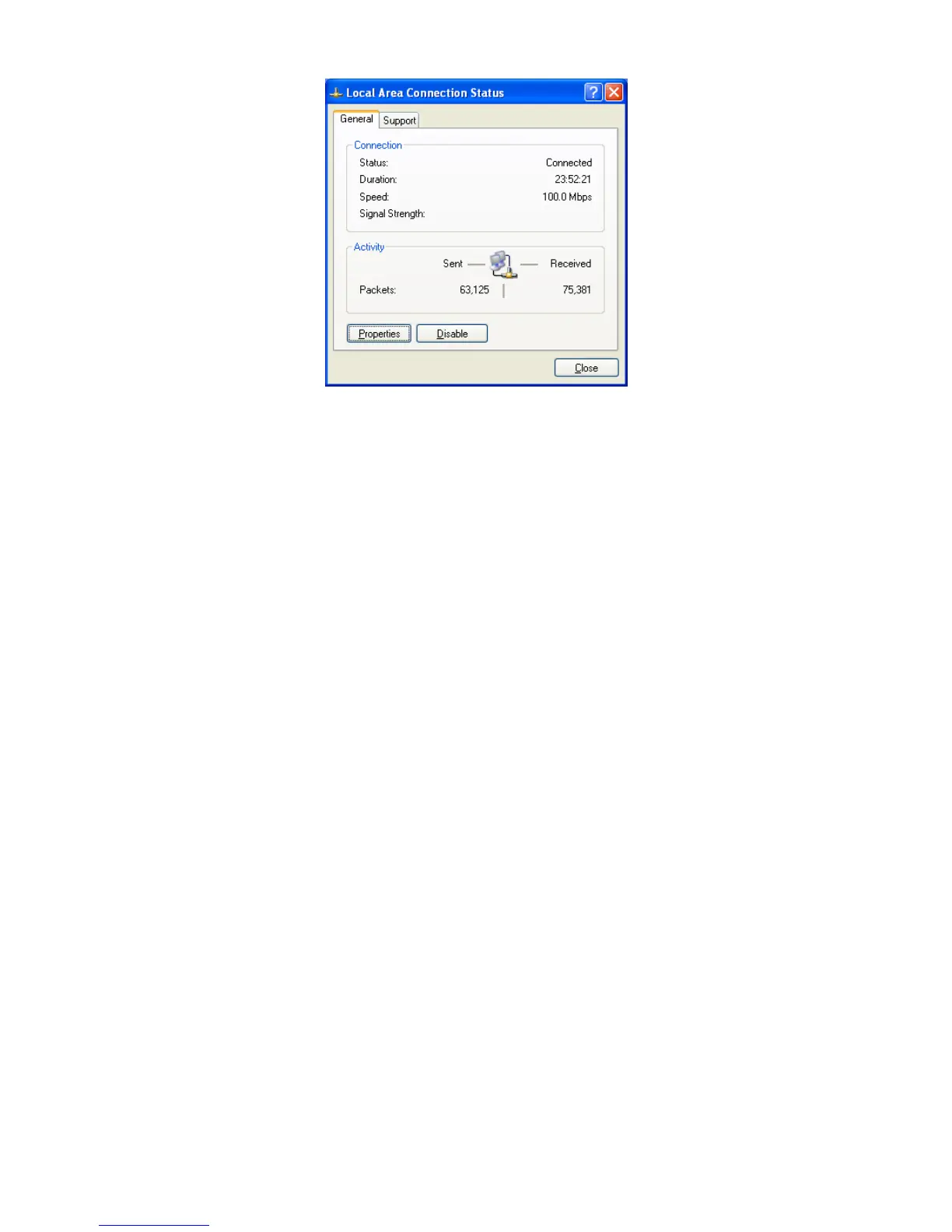 ENH200.TheLocalAreaConnectionStatusdialogboxappears.