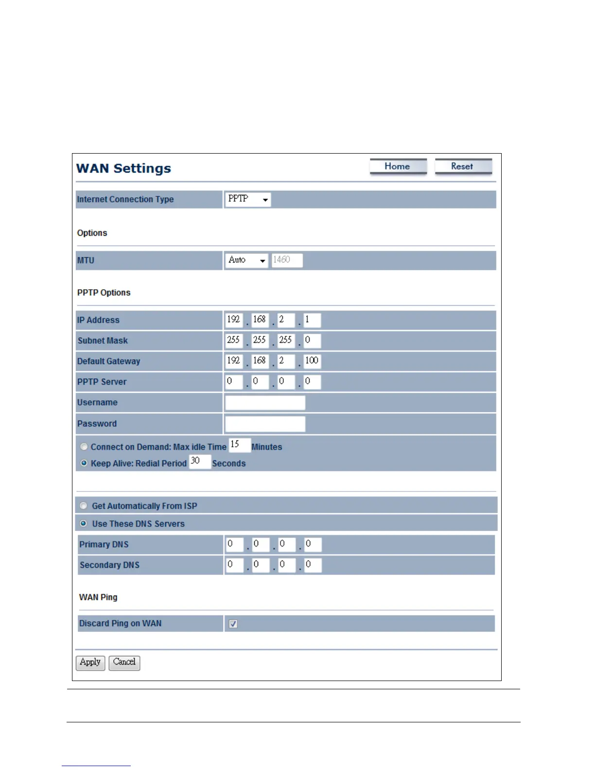 Select PPTP as your WAN connection type if your ISP uses a Point-to-Point-Tunneling