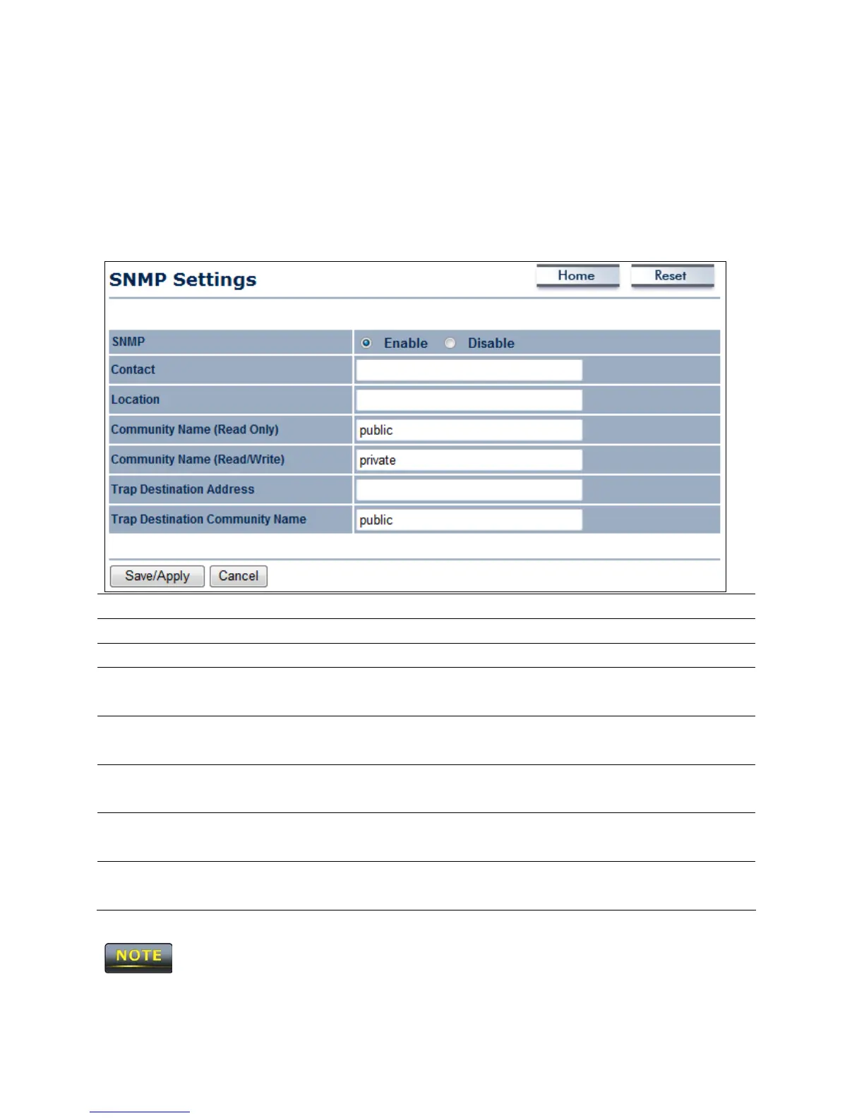 Click Save/Apply to apply the changes or Cancel to return