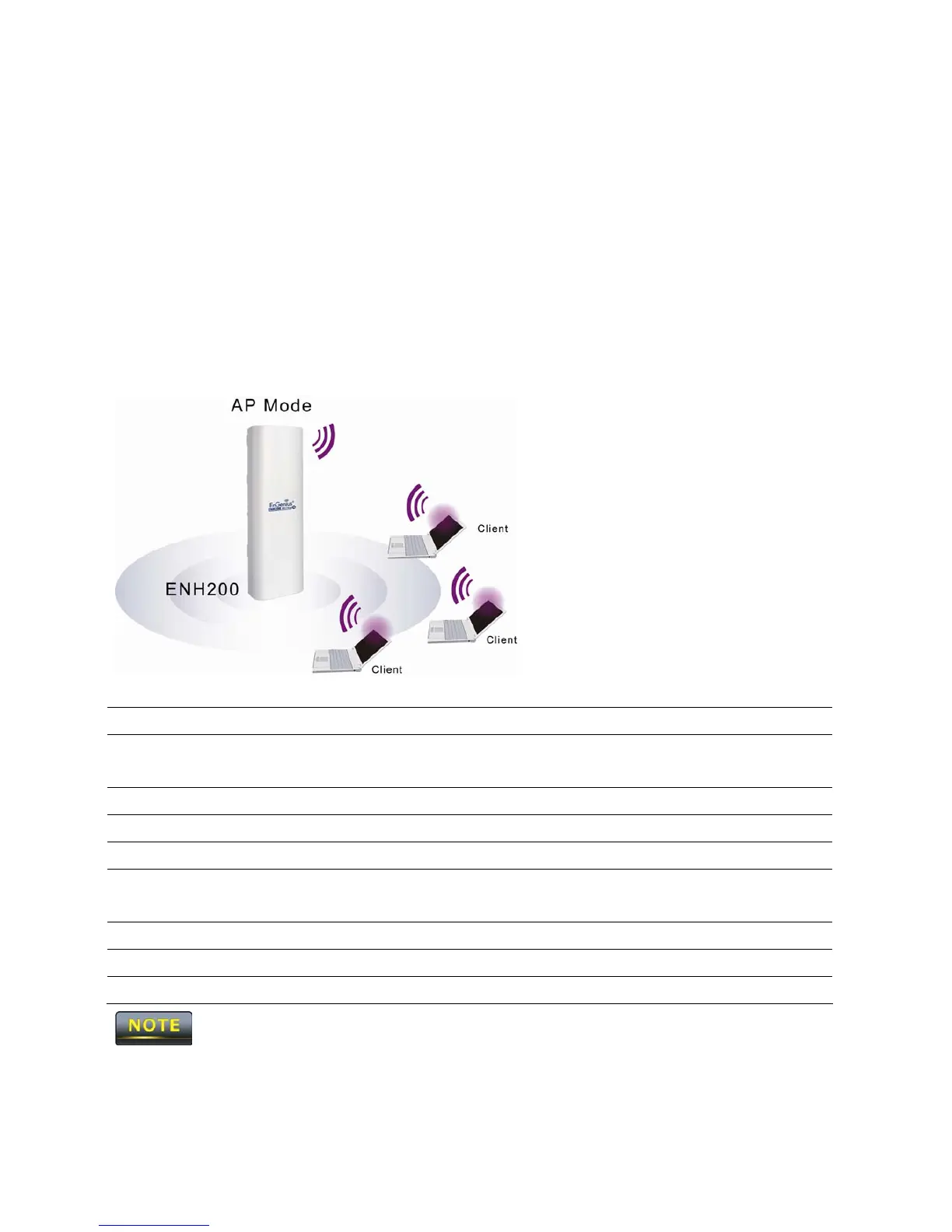 The Access Point Mode’s default configuration allows the ENH200 to act as a central unit of a