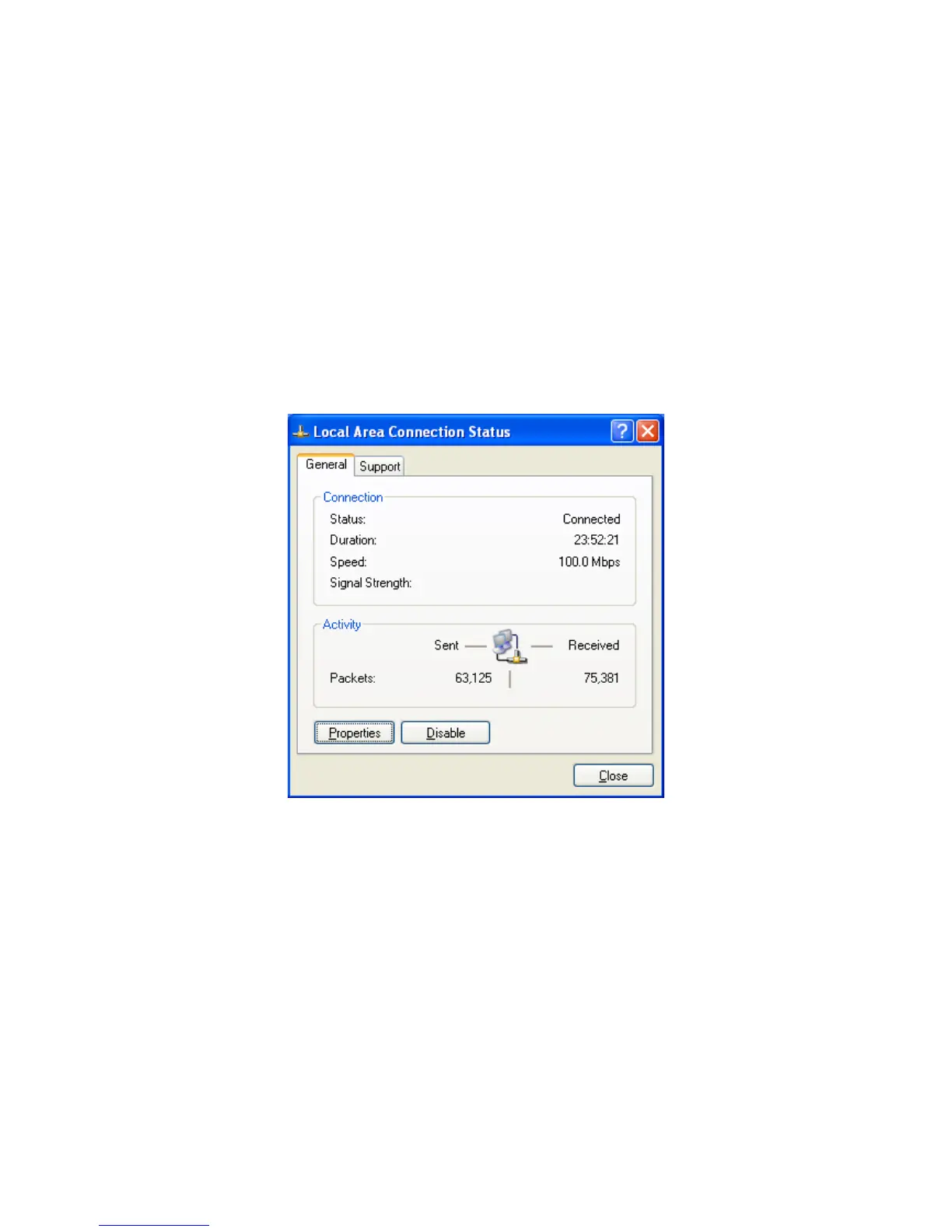 Local Area Connection Status dialog box appears.