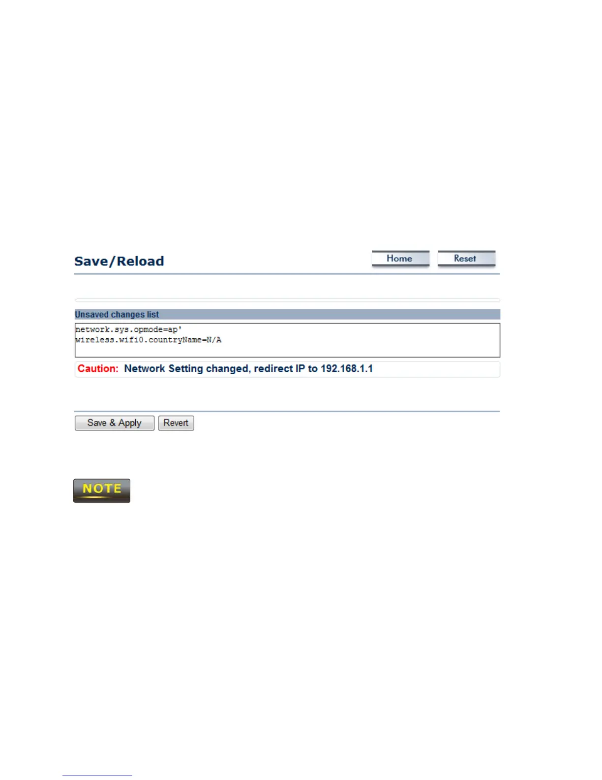 2. You need to use the Save/Reload page to commit your configurations by clicking the “Save