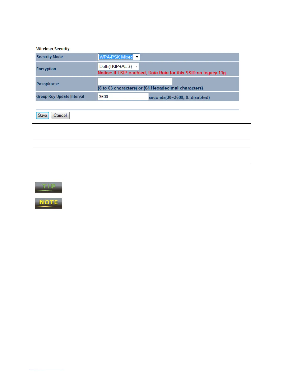 Security Mode Select WPA-PSK Mixed from the drop down list.