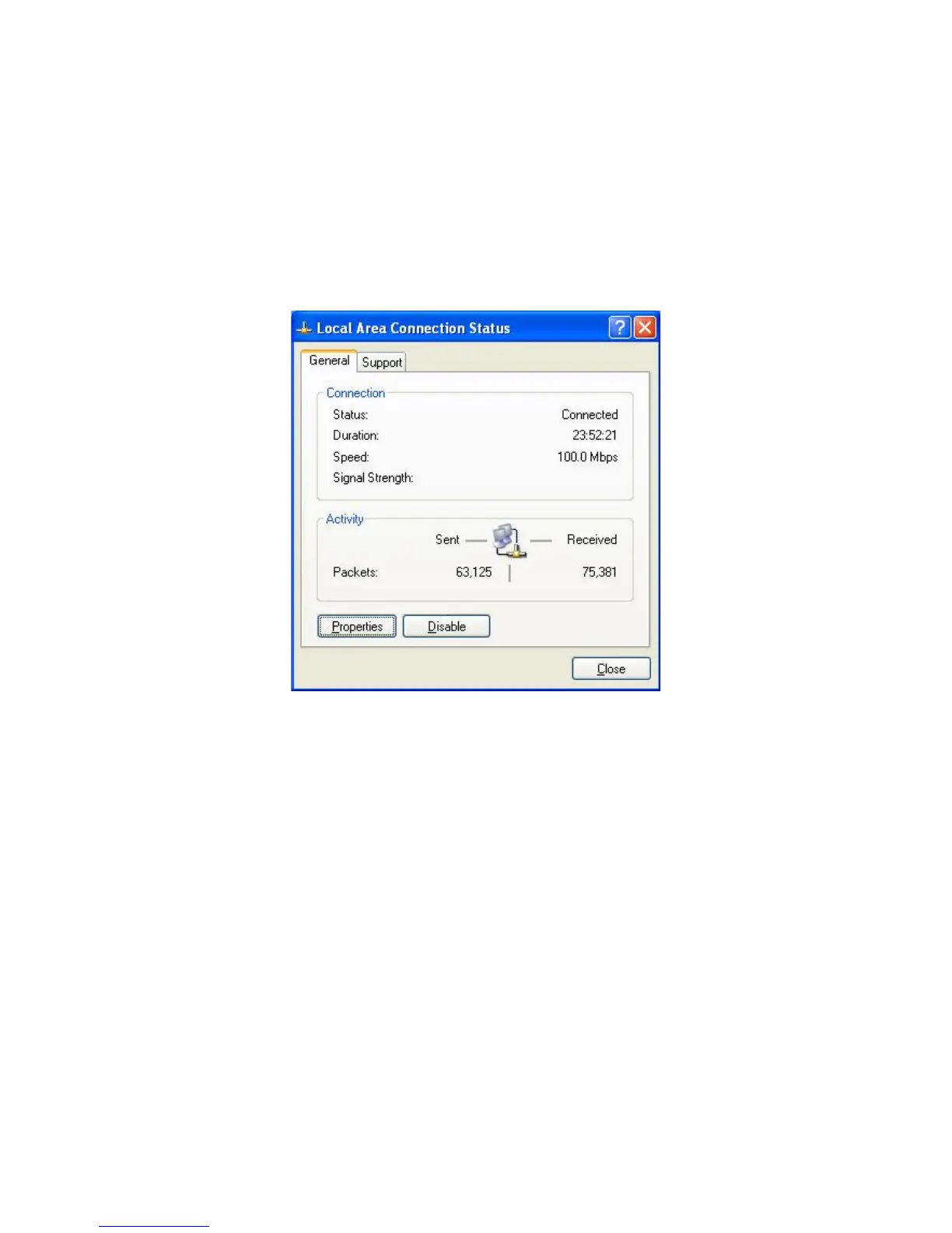 4. In the Local Area Connection Status dialog box, click the Properties button. The Local