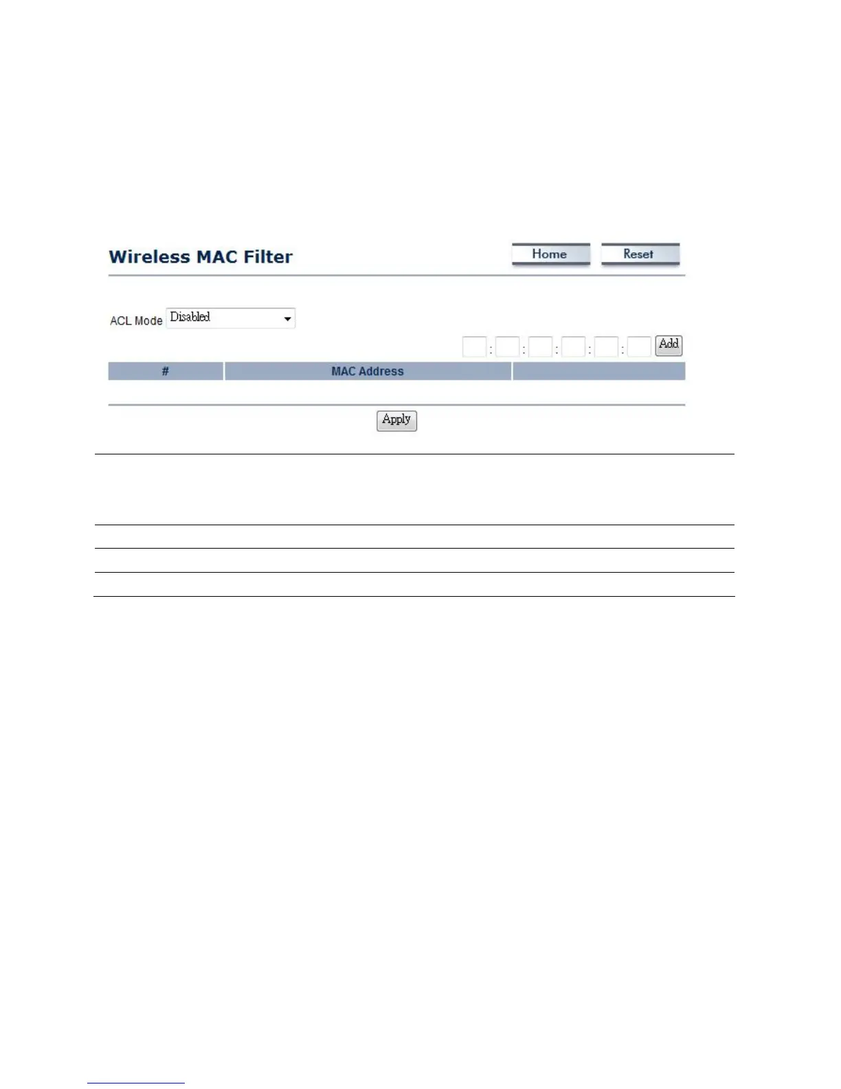 permission’s of the client. The default setting is Disable Wireless MAC Filters.