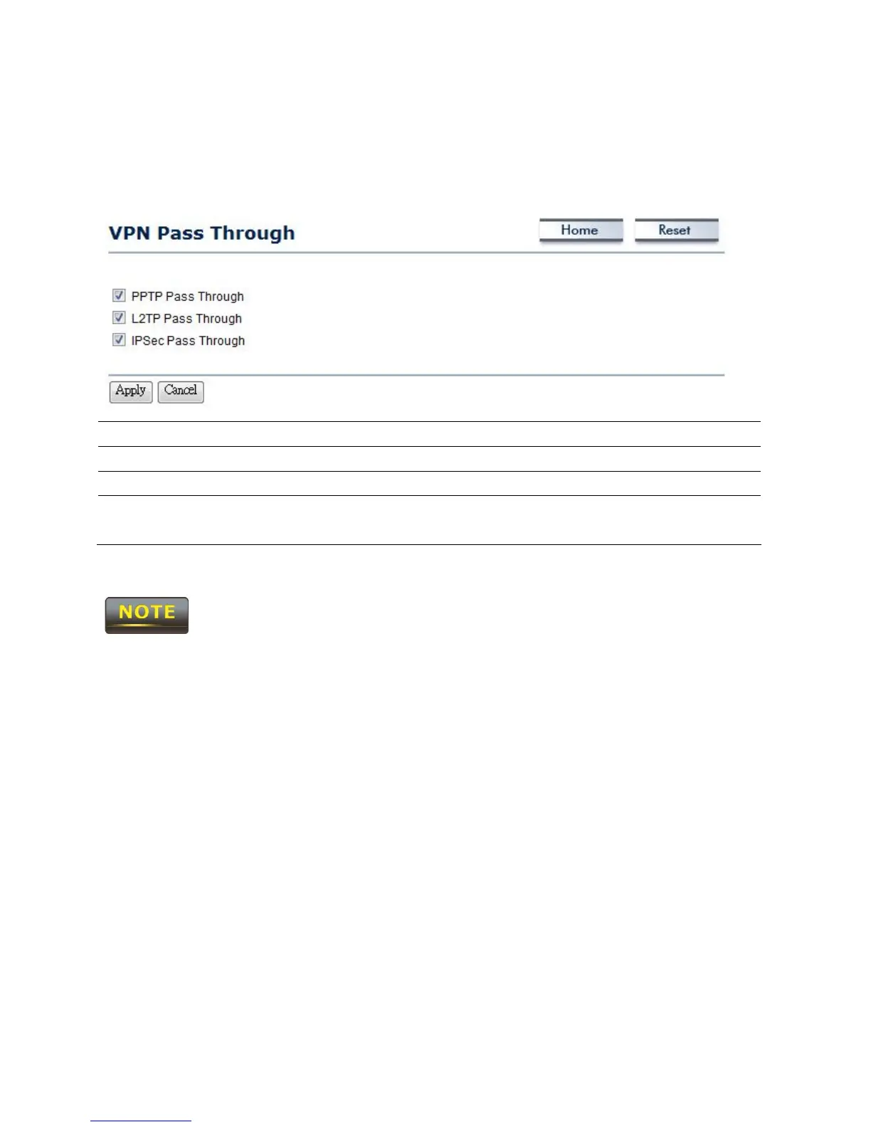PPTP Pass Through Place a check to enable PPTP protocol passes through WAN.