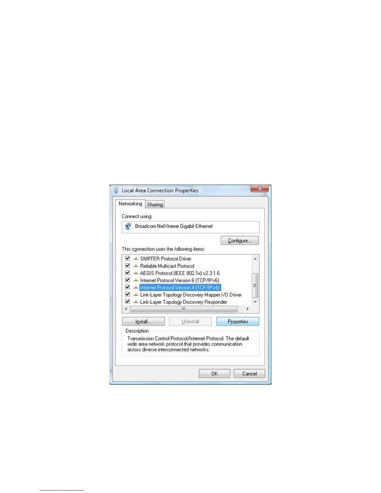 5. In the Local Area Connection Properties dialog box, verify that Internet Protocol