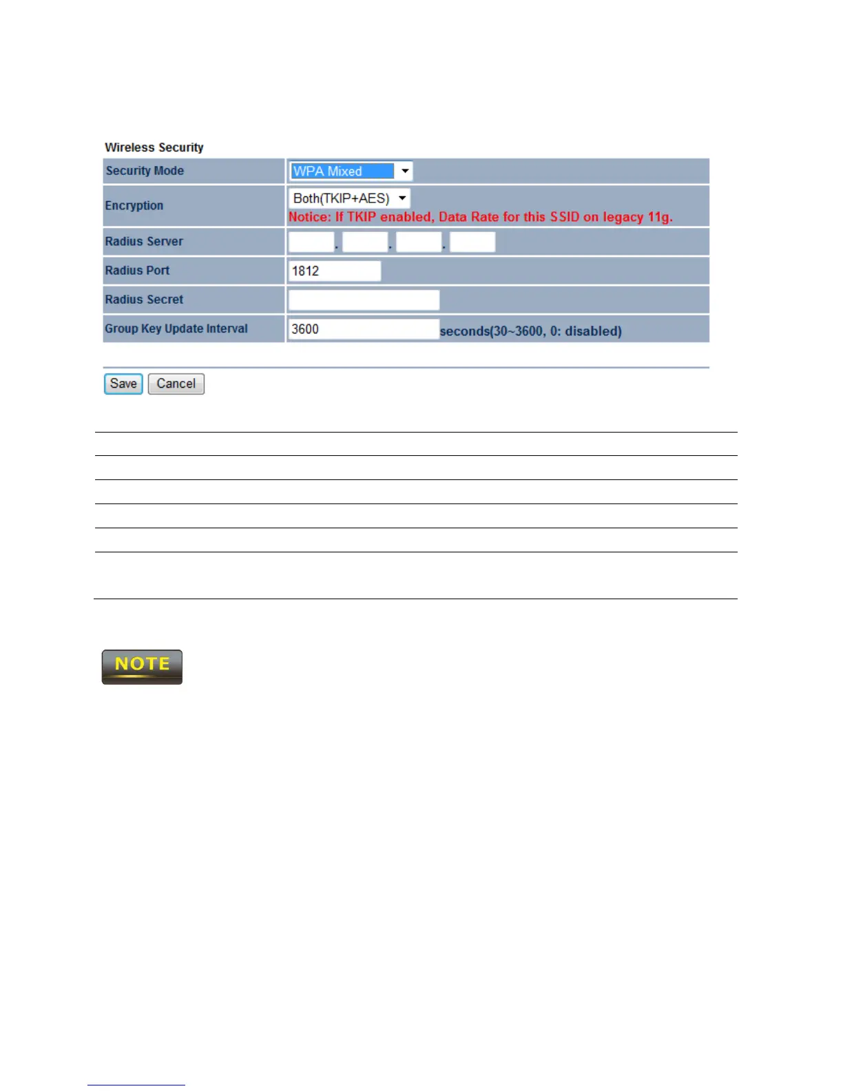 Security Mode Select WPA Mixed from the drop down list.
