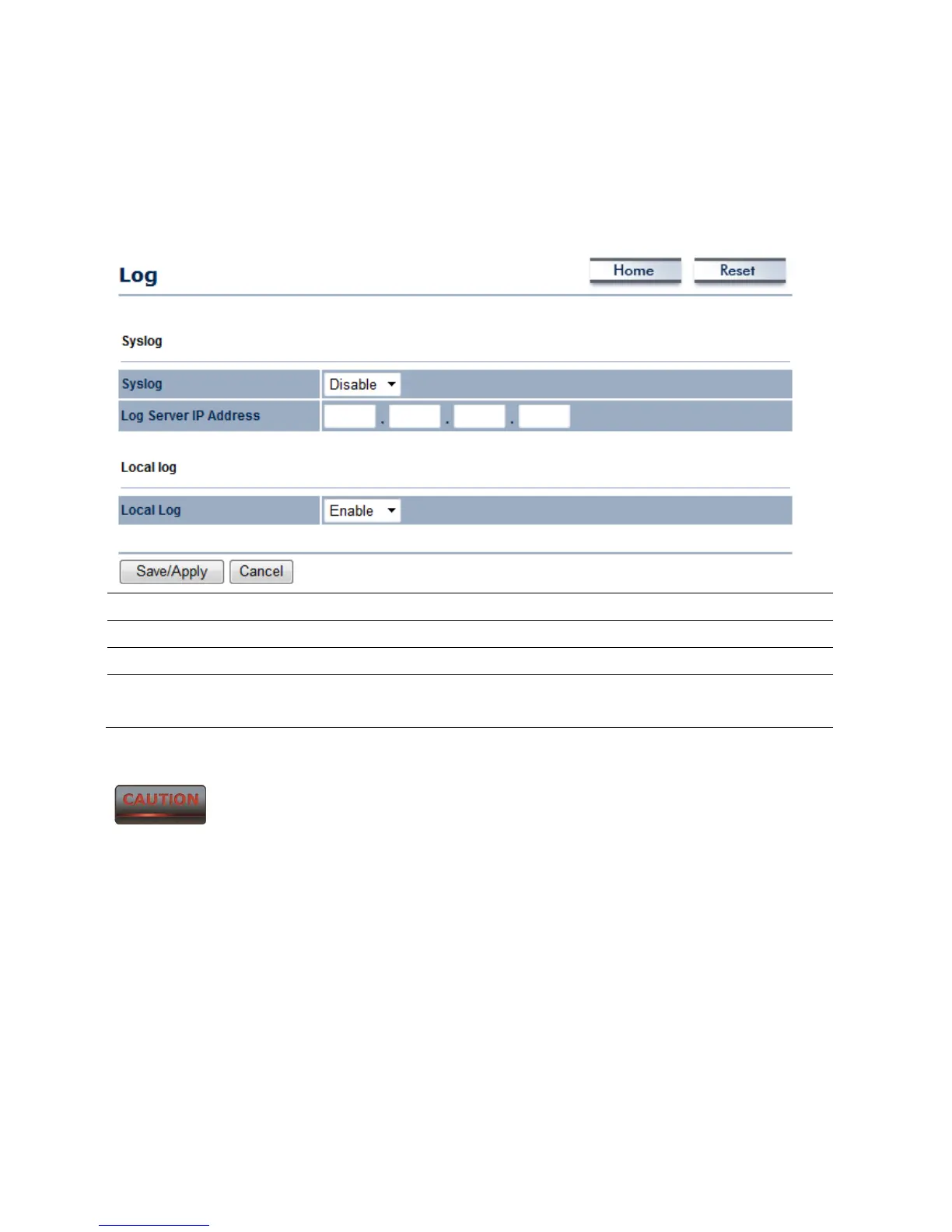 Syslog Select Enable or Disable Syslog function from the drop down list.