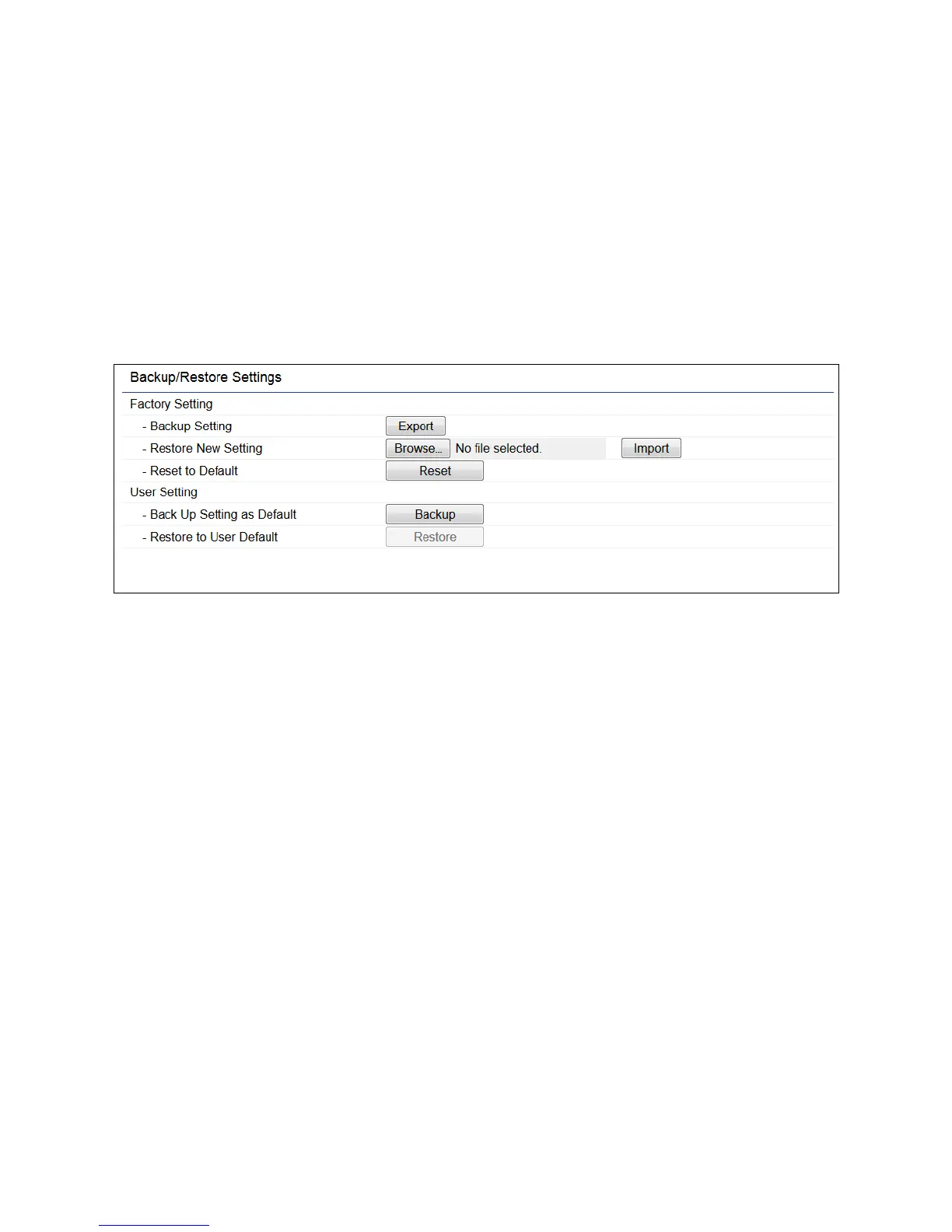 Backup Setting: Click Export to save the current