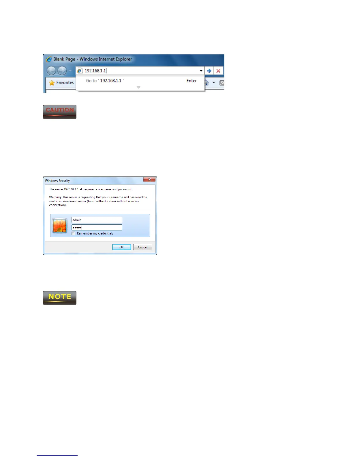 2. Enter IP 192.168.1.1 into your address bar.