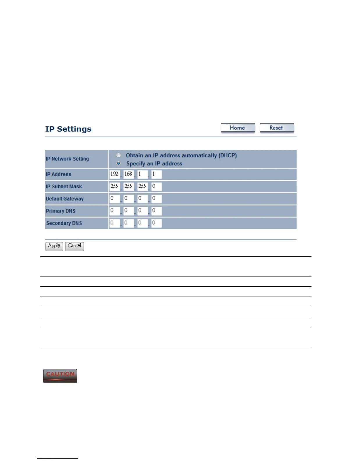 Default Gateway Specify Default Gateway.