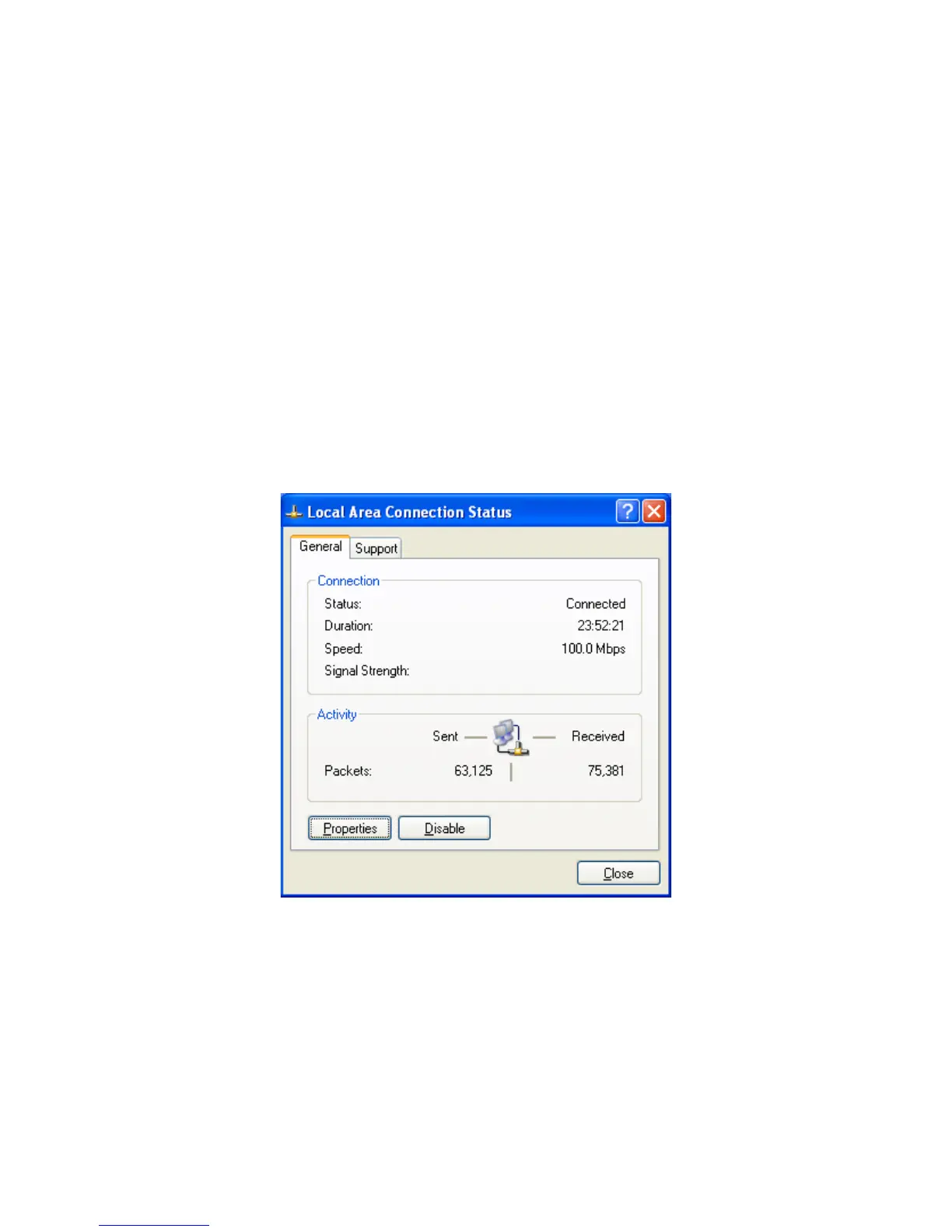 Local Area Connection Status dialog box appears.