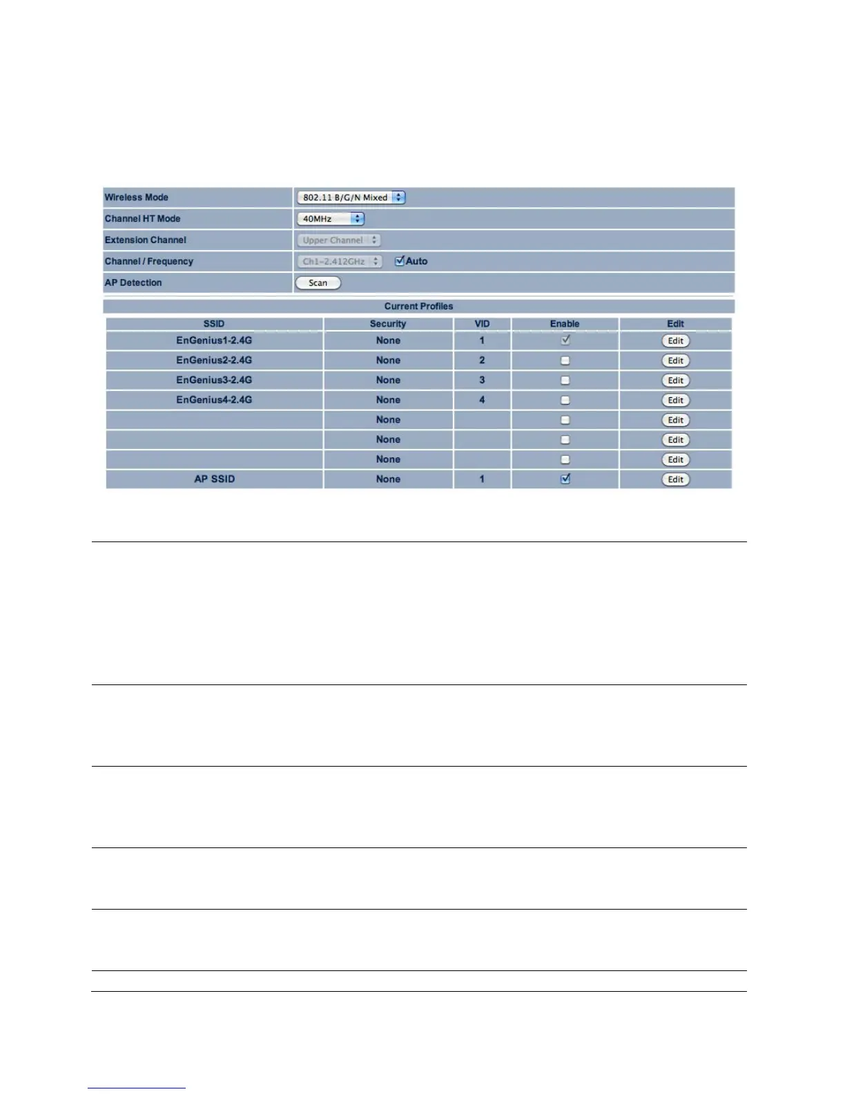 Current Profiles The ENH700EXT can operate up to total 16 SSIDs