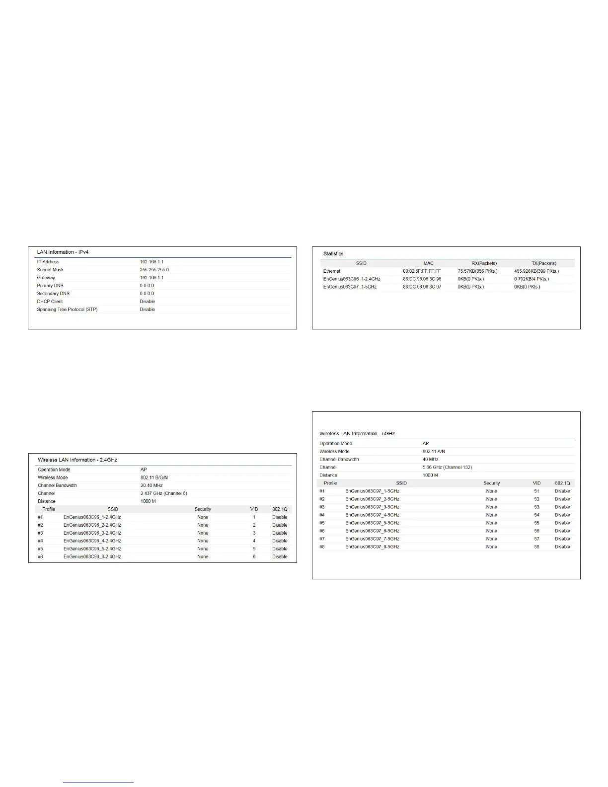 • The Wireless LAN Information 2.4 GHz/5 GHz section