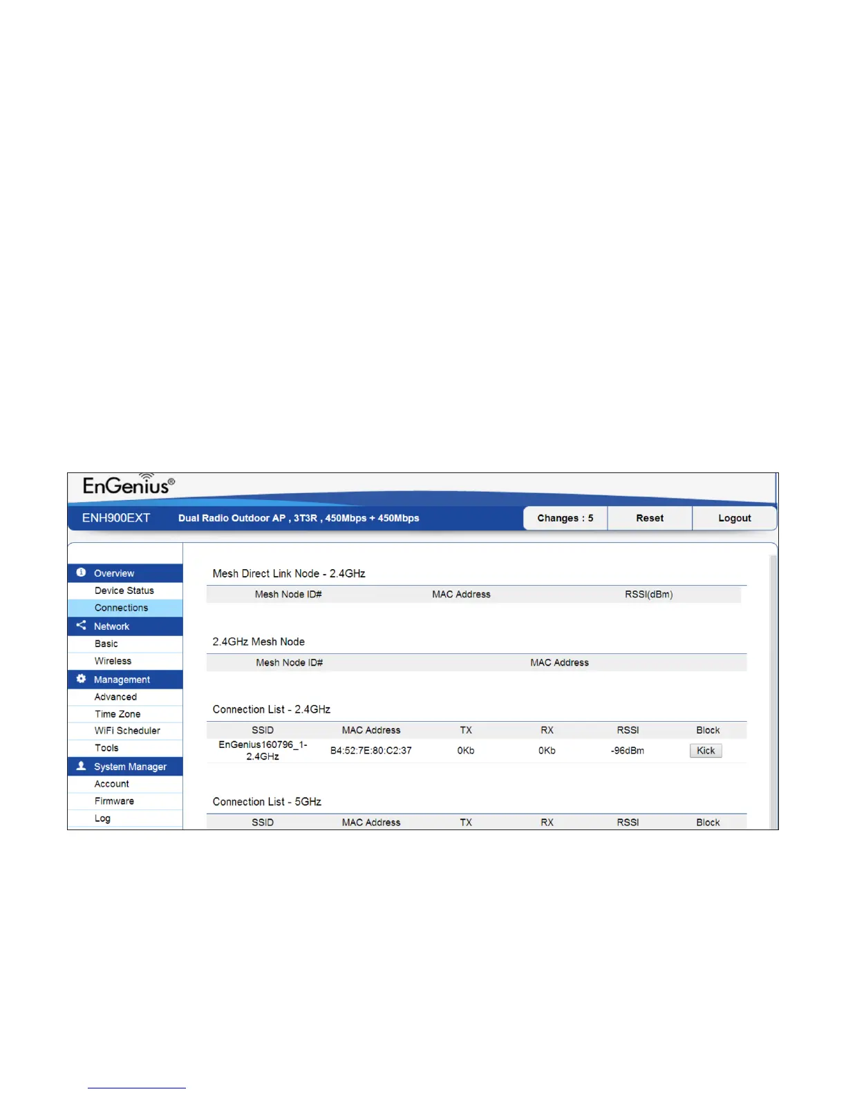 2.4 GHz/5 GHz, along with the MAC addresses and signal