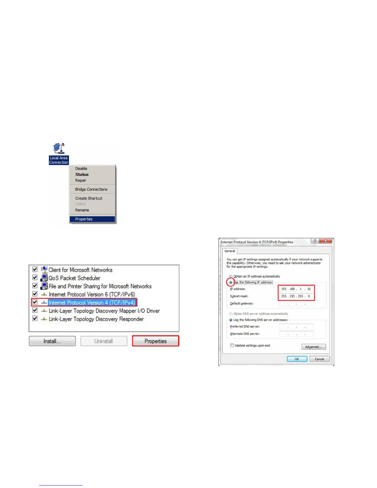 5. Select Use the following IP address and enter an IP