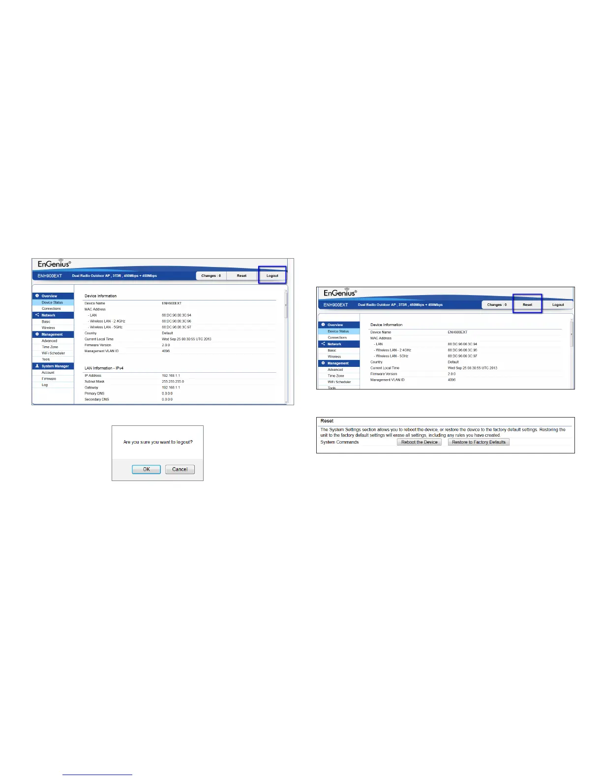 EnGenius ENS1750 - Logout and Reset Procedures