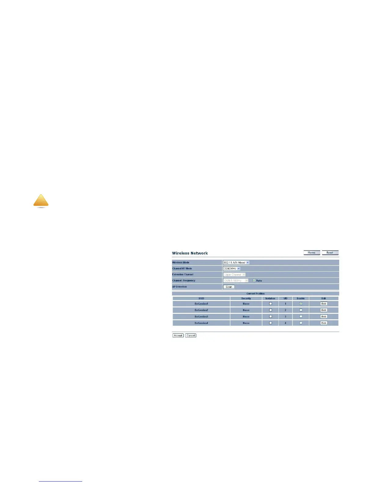 Instructions on how to configure the wireless and security settings for each of the possible operating modes.