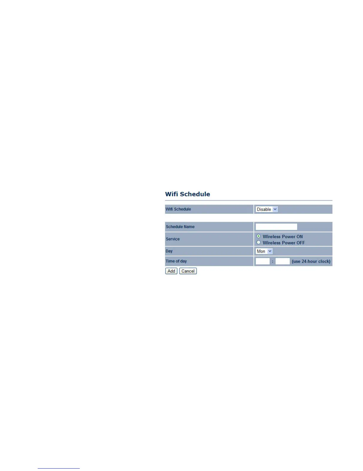 Use the Wi-Fi schedule function to control the wireless power ON/OFF service that operates on a routine basis.