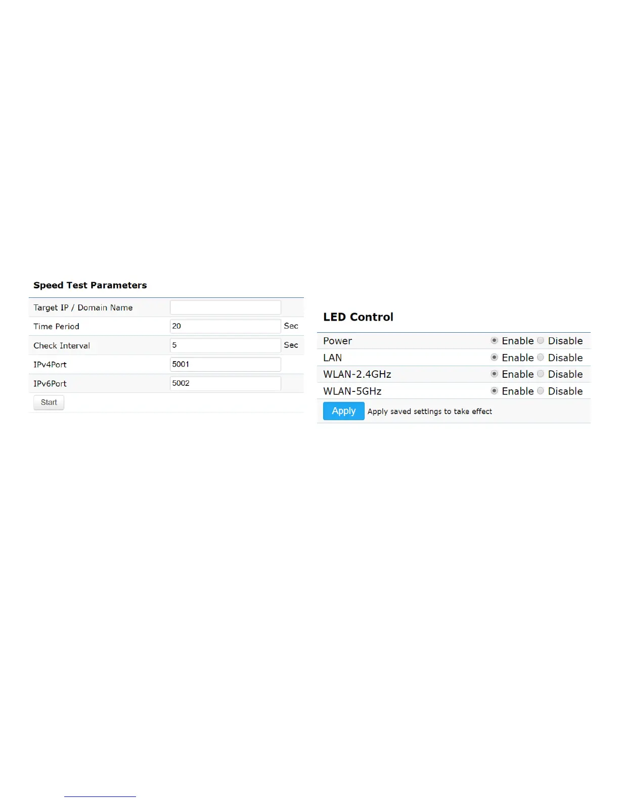 Control LED on/off for Power, LAN interface, or 2.4 GHz/5