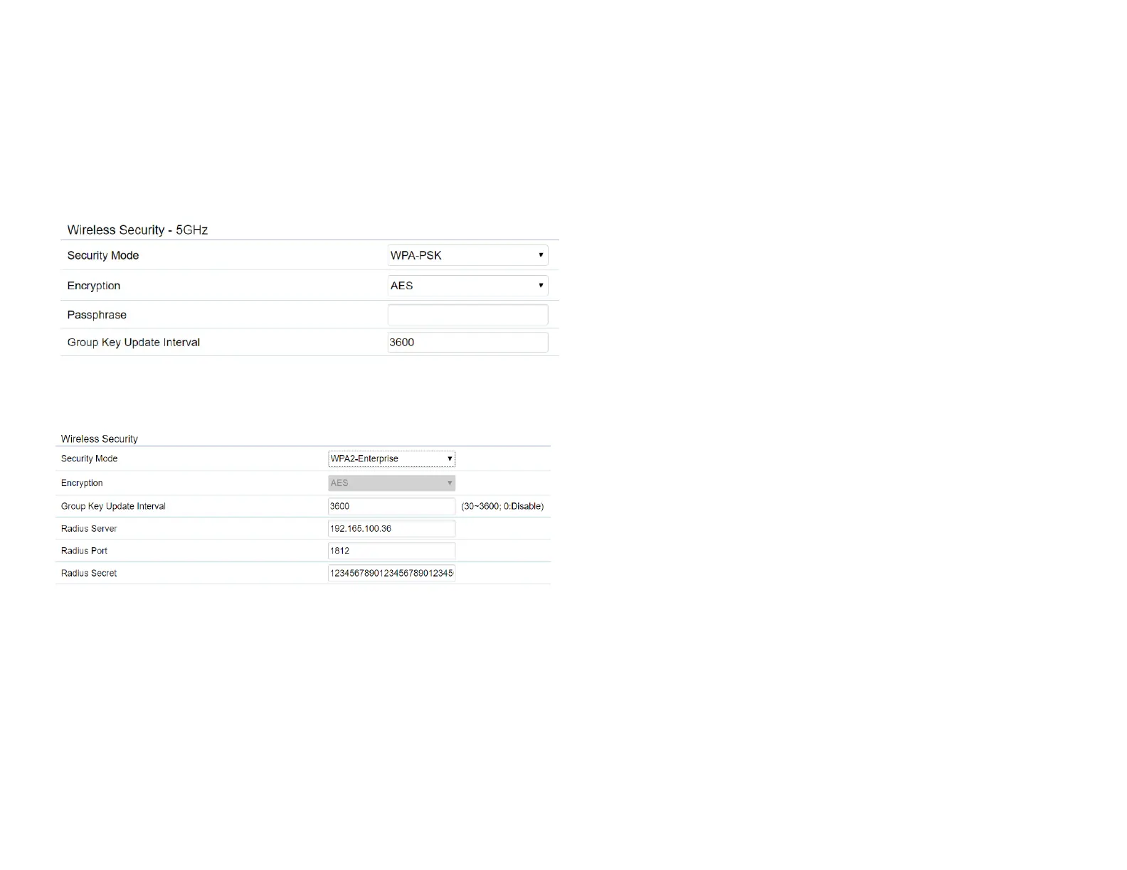 * Setting of WPA2-Enterprise (Pre-Shared Key):