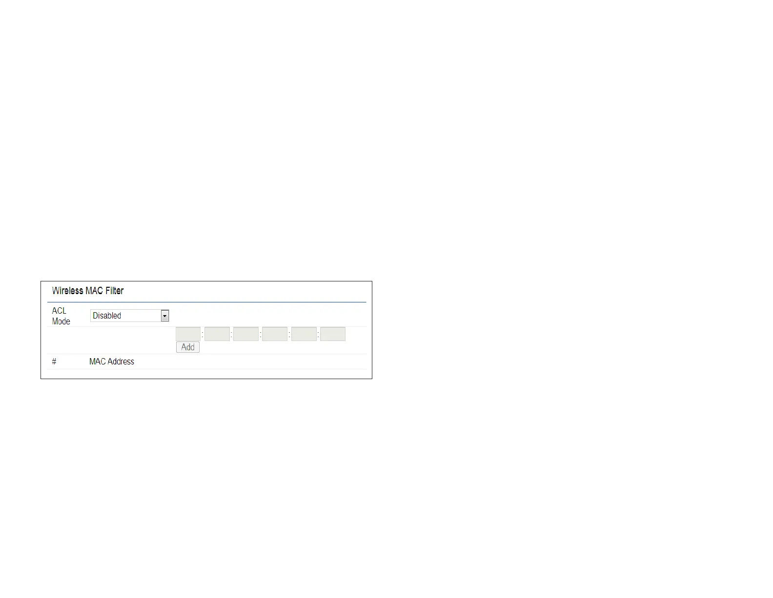 Add: Click Add to add the MAC address to the MAC address