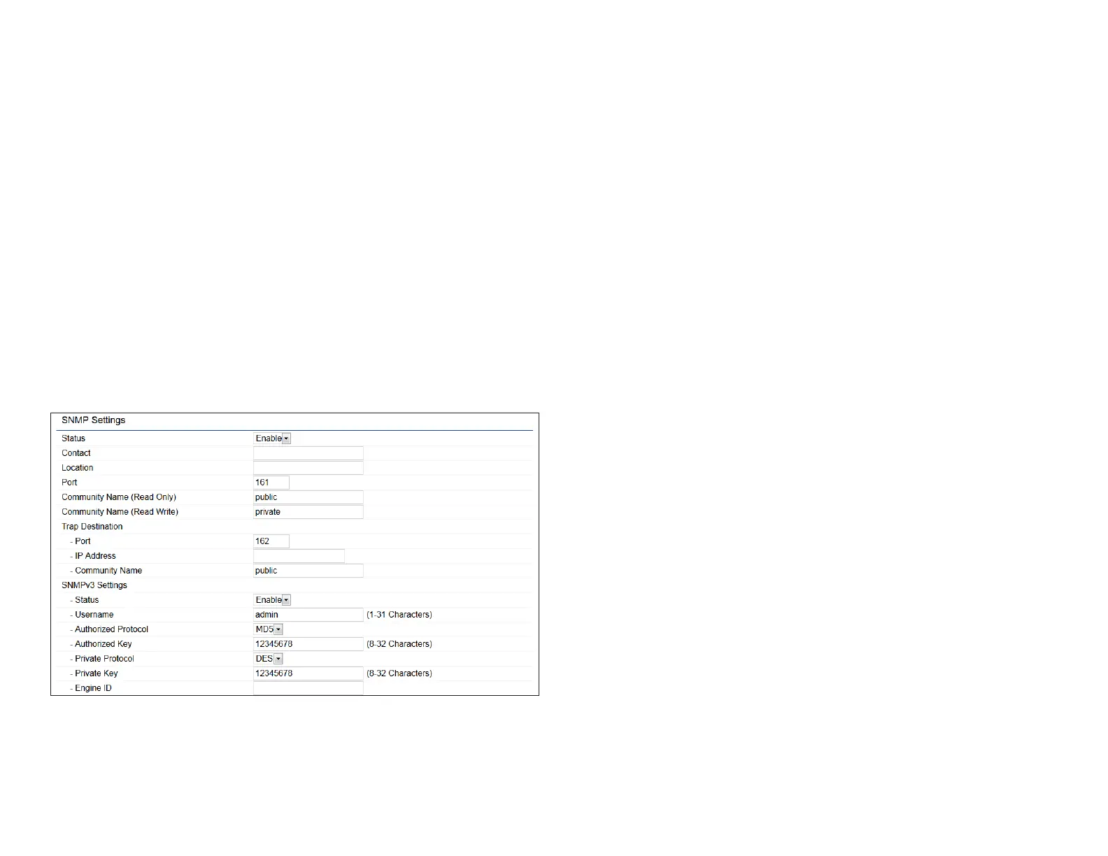 SNMPv3: Enables or disables the SNMPv3 feature.
