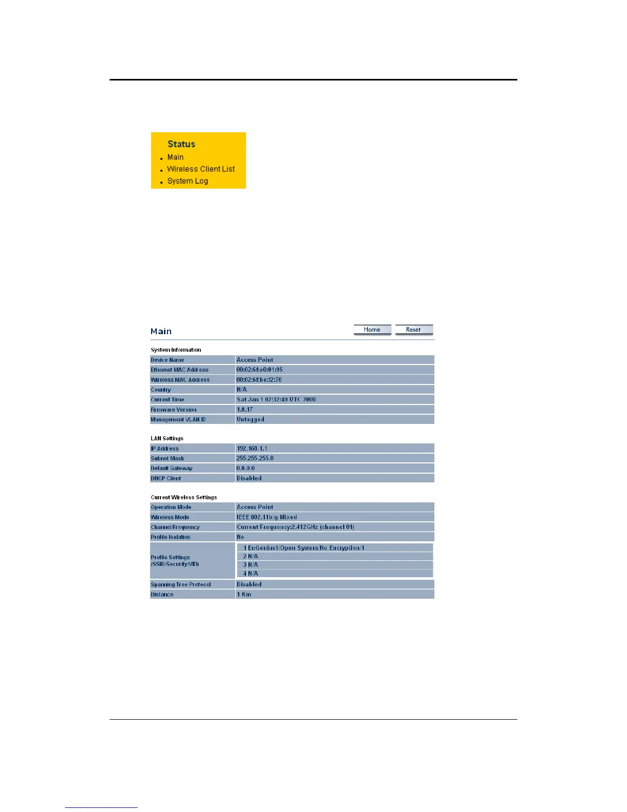 the frequency, channel is displayed. Since this device supports multiple-SSIDs, the