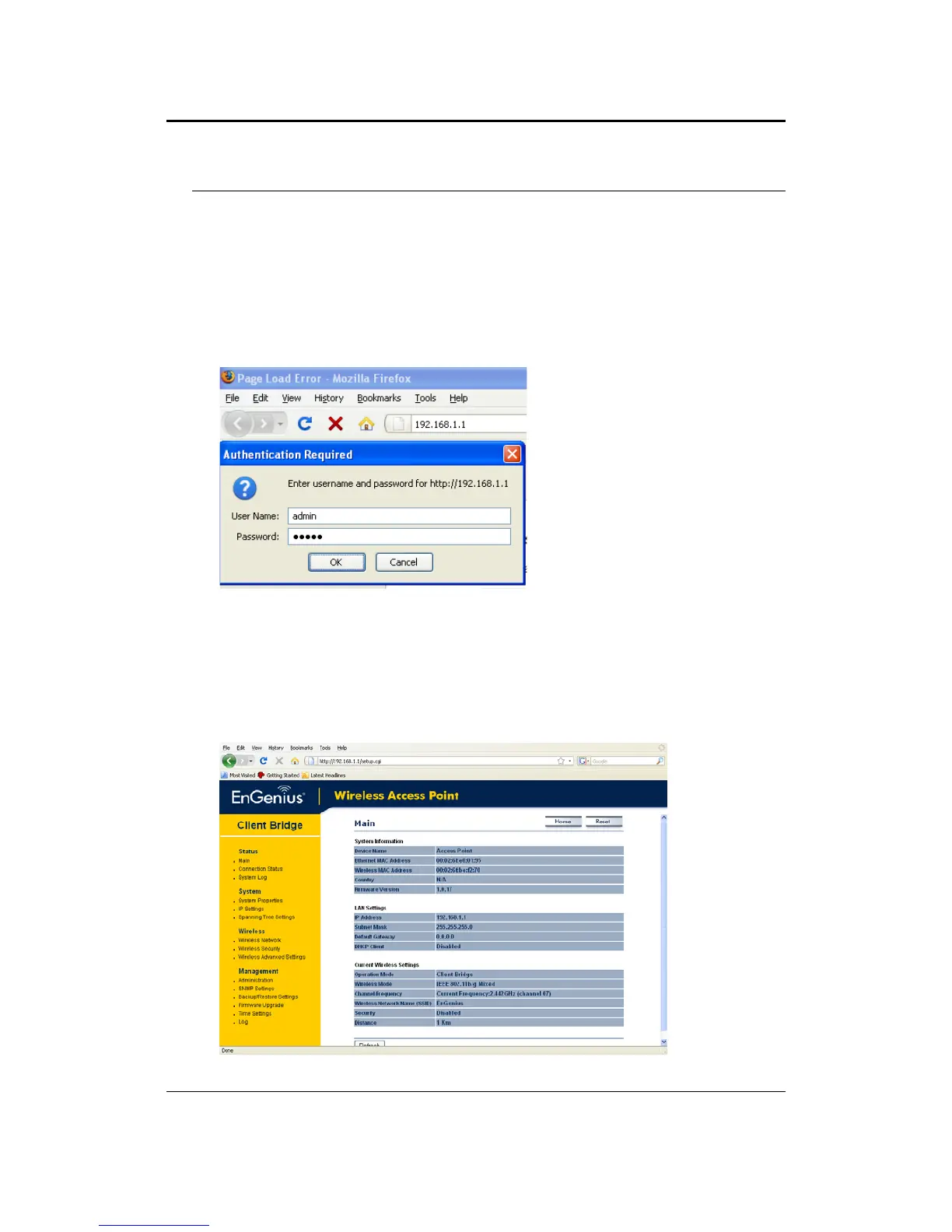 (default: 192.168.1.1) into the address bar of the web-browser and press Enter.