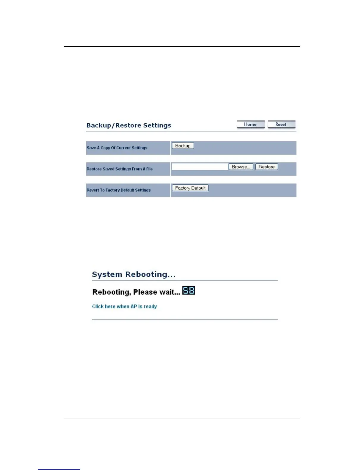 5.5.3 Backup/Restore settings, Reset to factory default settings