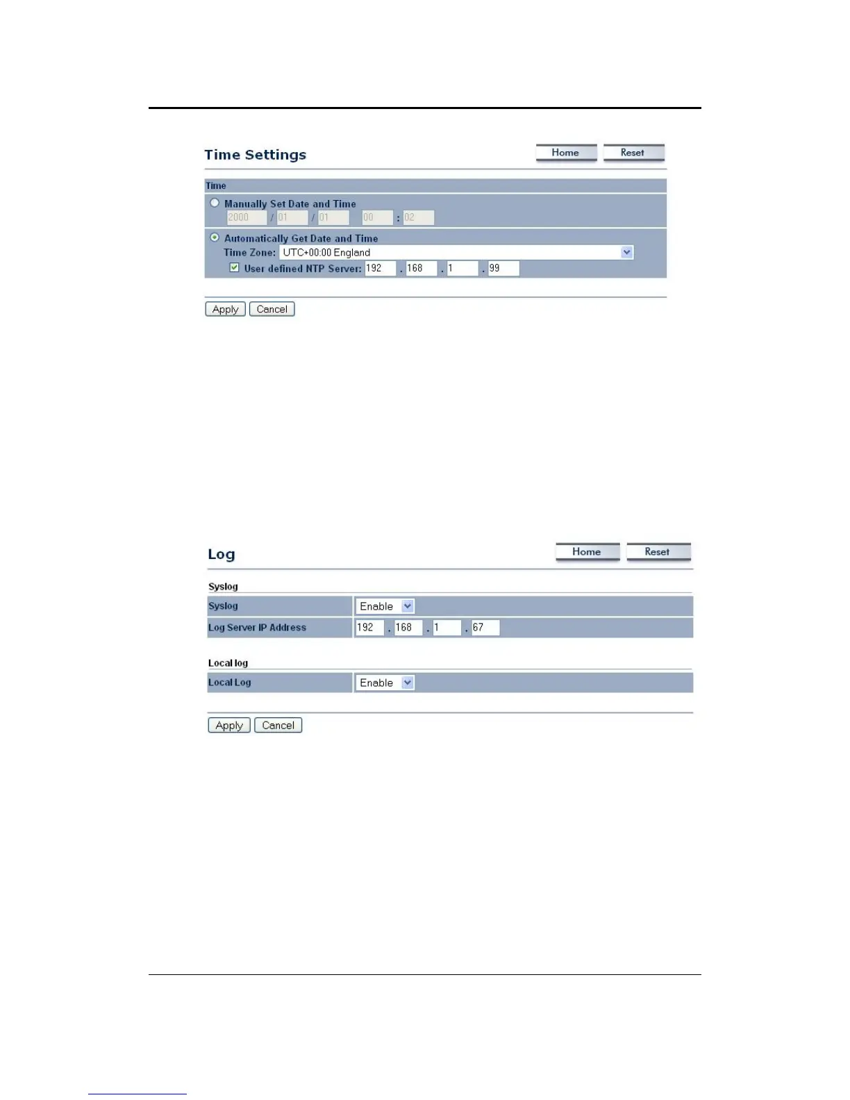 Syslog: Choose to enable or disable the system log.