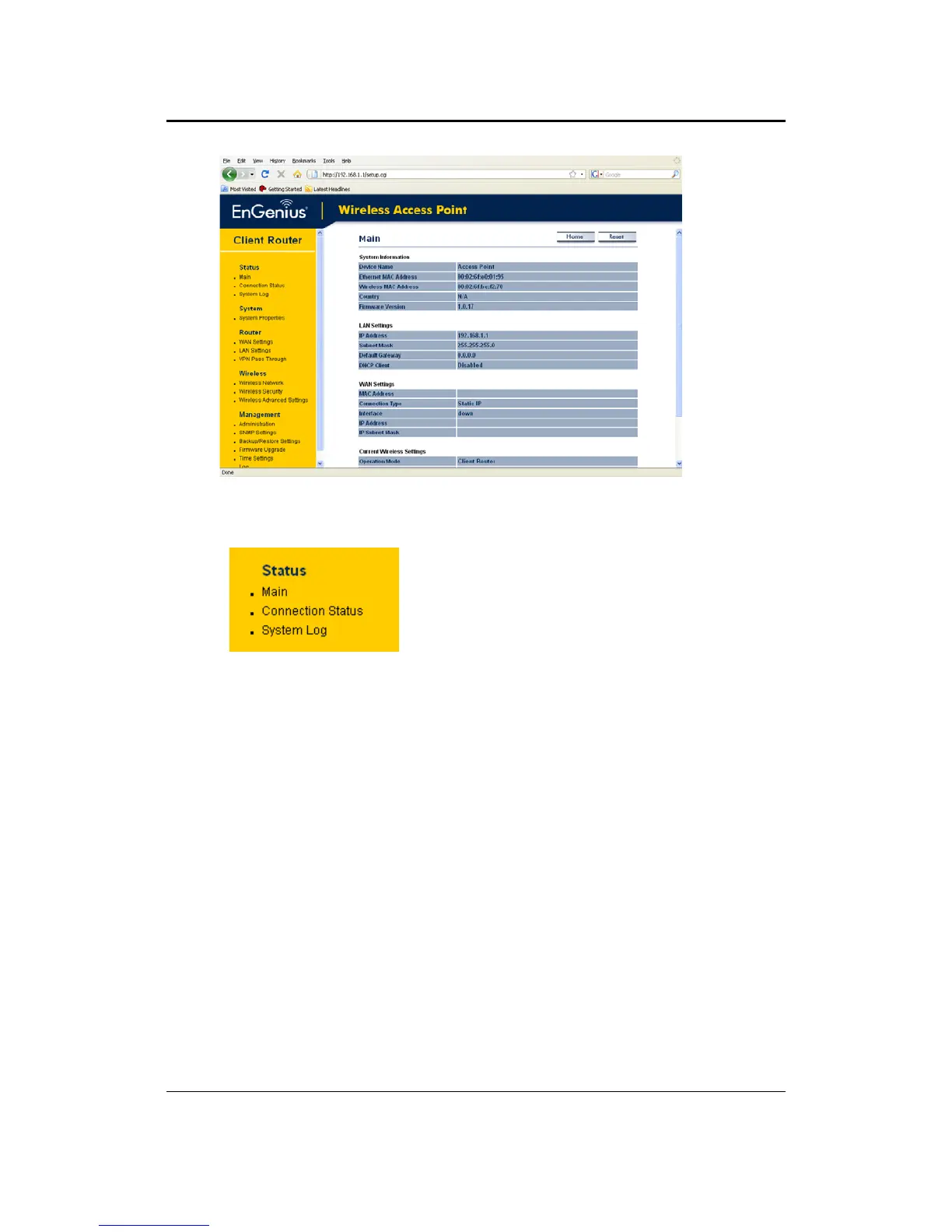 Click on the Main link under the Status drop‐down menu. The status that is
