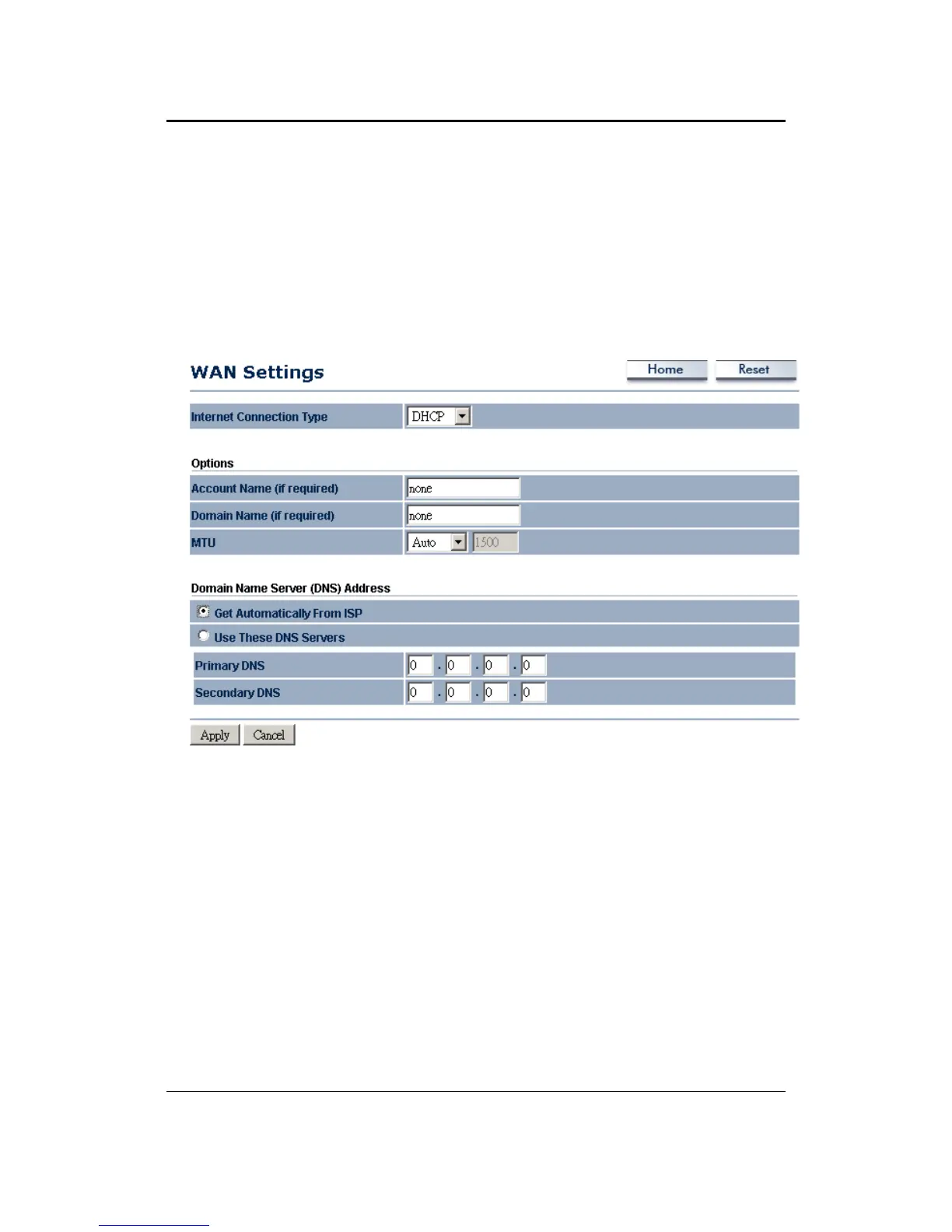 Click on the WAN Settings link under the Router drop‐down menu. This page