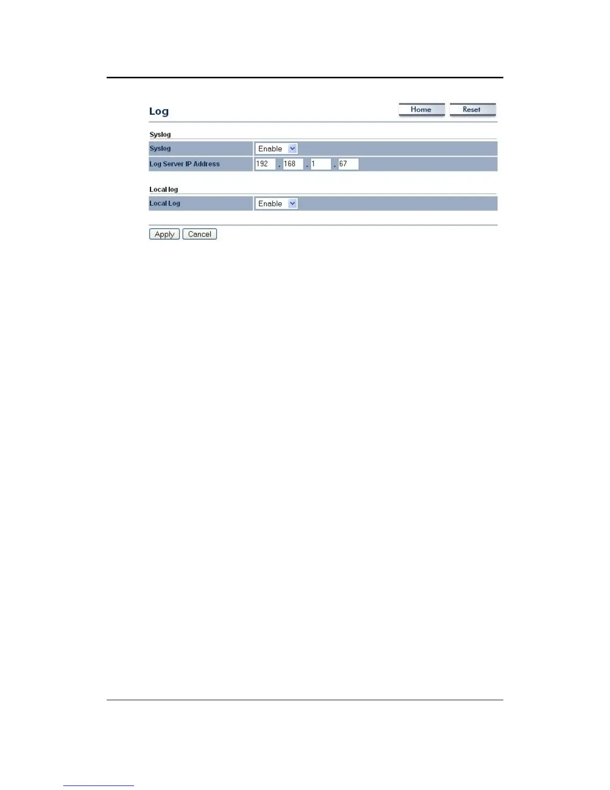 Syslog:Choosetoenableordisablethesystemlog.