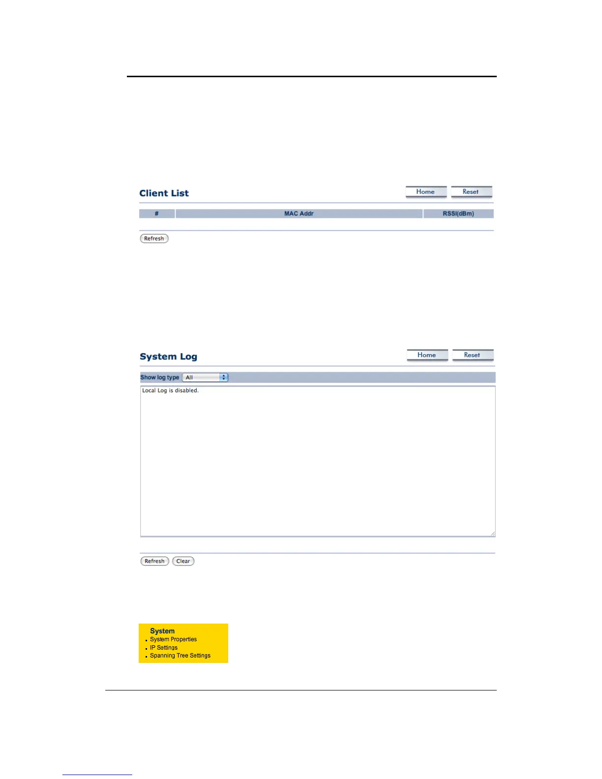 Click on the System Log link under the Status drop‐down menu. The device automatically logs