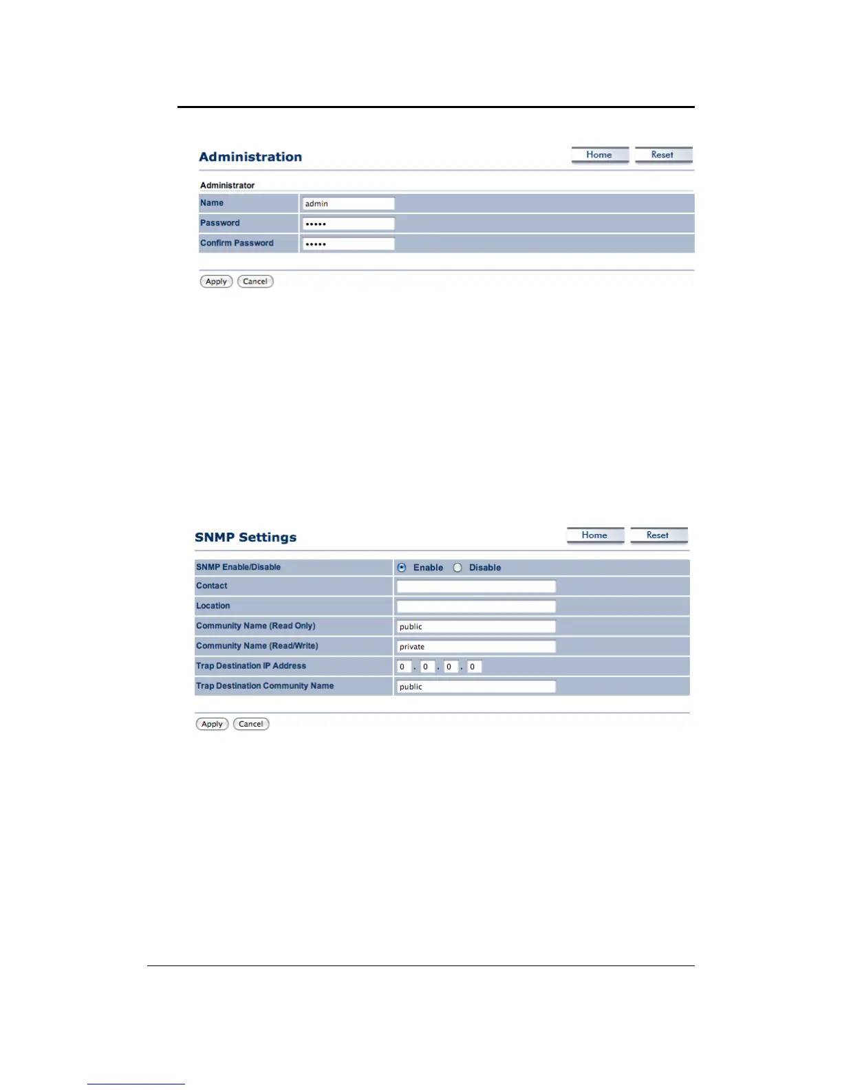 SNMPEnable/Disable:ChoosetoenableordisabletheSNMPfeature.