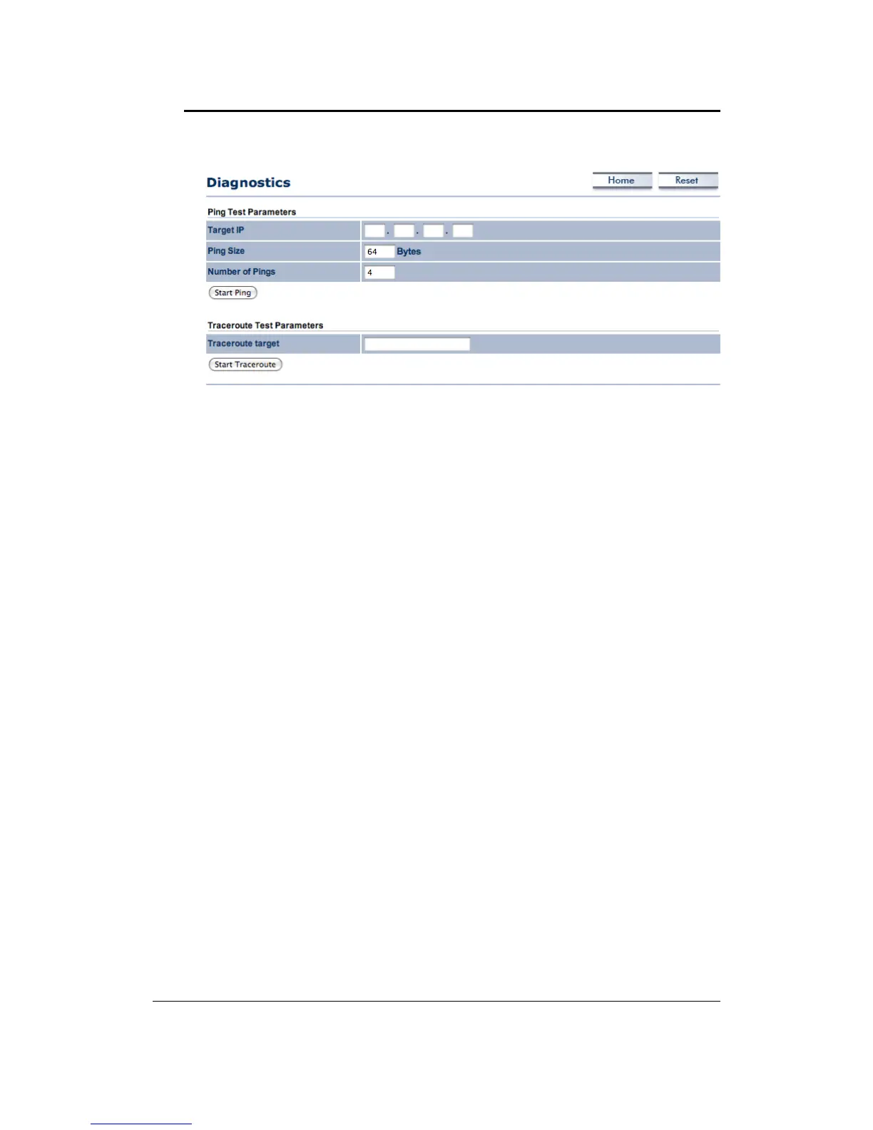 Ping Test Parameters : User can input Target IP, Ping Size and Ping Quantity of other network