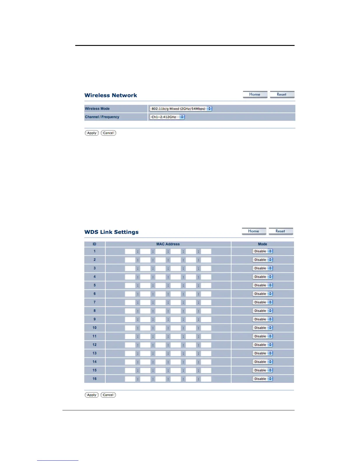 Clickon theWDS Link Settings linkunder theWirelessdrop‐downmenu.This pageallows
