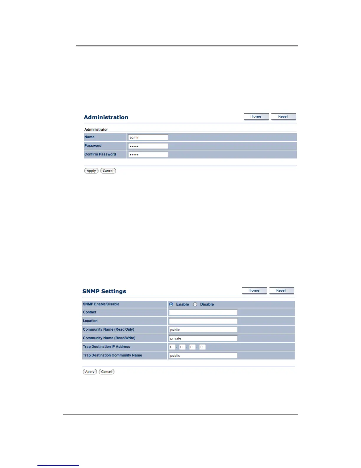 SNMPEnable/Disable:ChoosetoenableordisabletheSNMPfeature.